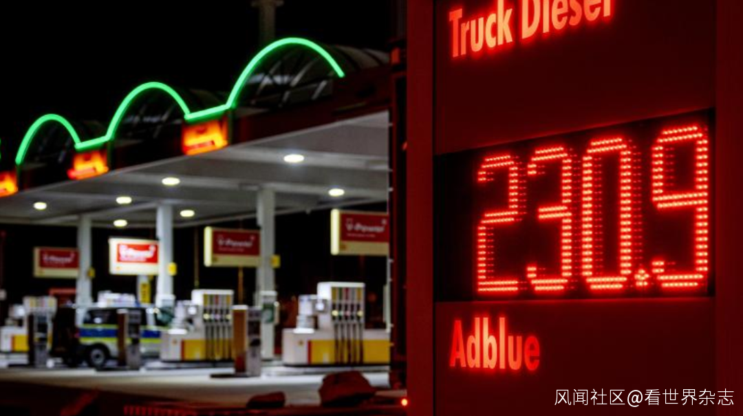 在德、意等國,油價**突破2歐元的“黑金時代”**已經來臨。在德國從事汽車動力研發的鮑先生告訴南風窗記者,現在柴油的市場價幾乎每天漲0.1歐元。“2020年柴油最低曾只有1歐元/升,這兩年平均也就是1.2~1.3歐/升的樣子,到1.4歐就會覺得貴了。結果俄烏衝突這半個月,一下子漲了近50%。”