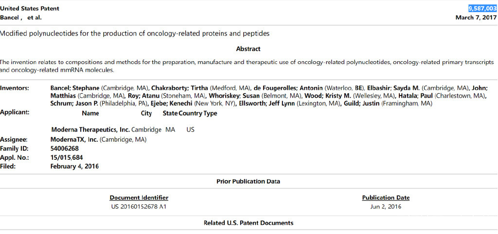 序列恰巧出現在美國莫德納公司(而不是其他公司)的專利中;