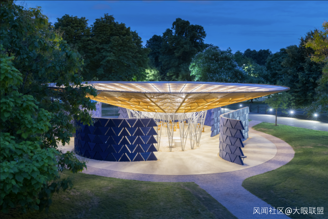倫敦的蛇形迴廊,他用木材打造出非洲紡織品的紋理。