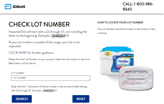 FDA建議消費者不要繼續使用雅培公司所召回的產品,包括 Similac, Alimentum和EleCare配方奶粉。被召回的產品可以通過包裝底部的7-9位數字代表以及有效期來識別。