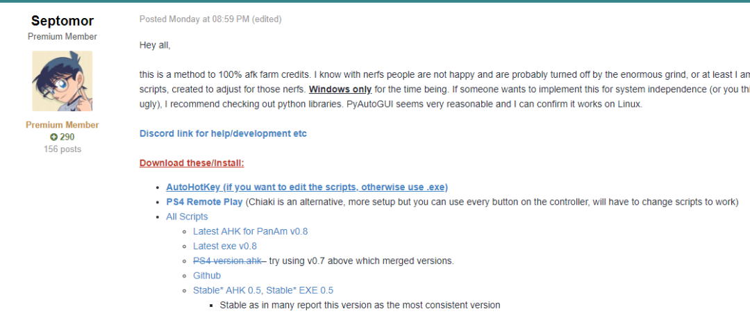 為此,有玩家甚至想出了用作弊手段對抗官方的方式:一名ID為 Septomor 的玩家在PSNProfiles上光明正大的發佈了自己編寫的腳本,並描述了使用細則。