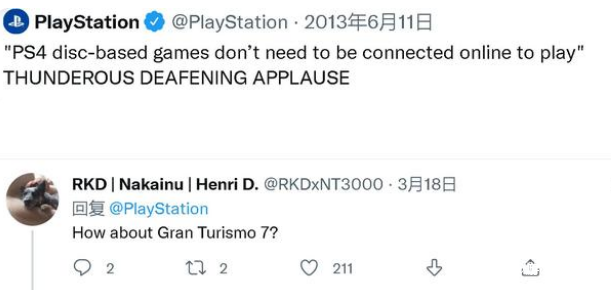 也有玩家憤怒地開始“挖墳”,搬出索尼官推過去諷刺Xbox遊戲聯網的言論,來嘲諷現在GT7遭遇的狀況。