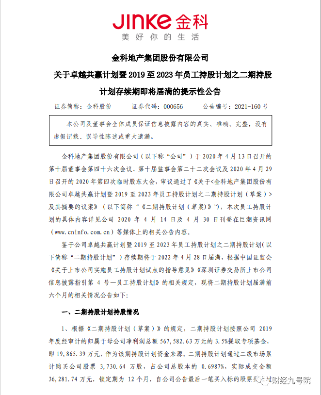 二期員工持股計劃則虧得更多。據金科股份2021年11月29日發佈的公告稱,二期員工持股計劃存續期即將於今年4月28日屆滿。