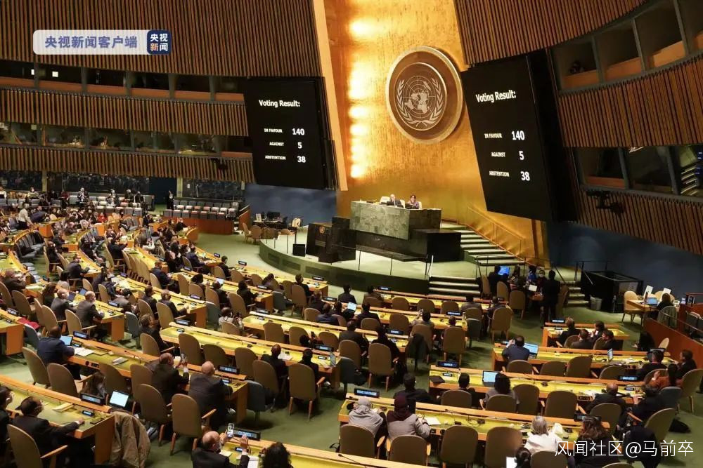 在投票中,**共有140票贊成,38票棄權,5票反對。**俄羅斯、白俄羅斯、朝鮮、敍利亞和厄立特里亞投了反對票。中國投了棄權票。