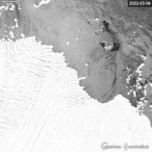 伍茲霍爾海洋研究所和NASA的地球和行星科學家Catherine Walker週四發佈了衞星圖像,GIF圖顯示,冰架在3月14日之前慢慢崩塌,然後是3月16日的下一張圖片,顯示它已經完全坍塌了。