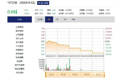 3月24日,*ST艾格( 002619.SZ )已連續15個交易日收盤價低於1元,即使此後5個交易日連續漲停,股價也無法返回1元,鐵定觸發退市規定。