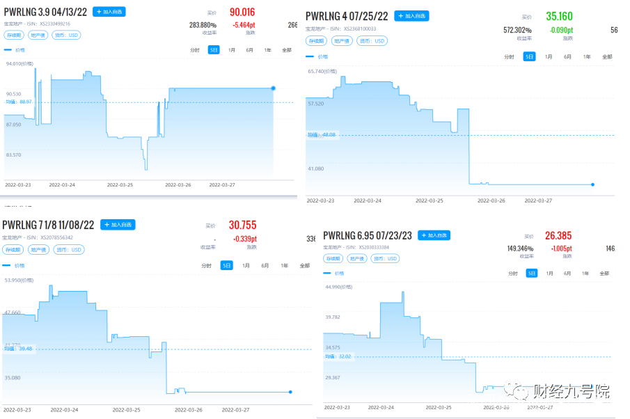 同時,寶龍地產的境內外債從25日起也迎來一波大跌。特別是美元債方面迎來了較大規模的拋售。
