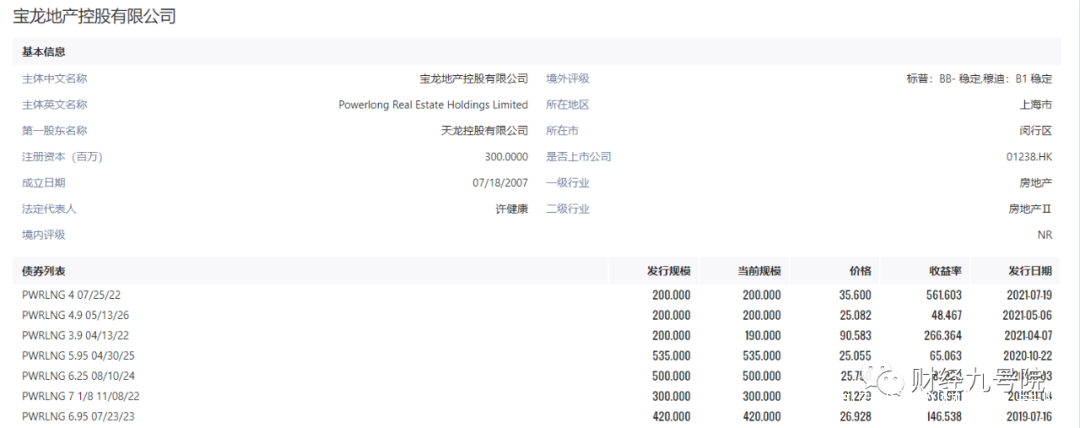 25日,寶龍地產旗下的幾隻美元債,如PWRLNG 4.9 05/13/26當天一度暴跌13.25%;PWRLNG 5.95 04/30/25大跌11.7%,而下個月13日即將到期的PWRLNG 3.9 04/13/22也一度大跌7個點。