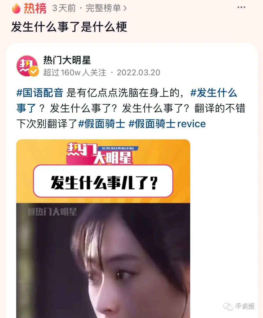 最近,有關《假面騎士》的一個梗破了圈,其名為“發生什麼事了?”。