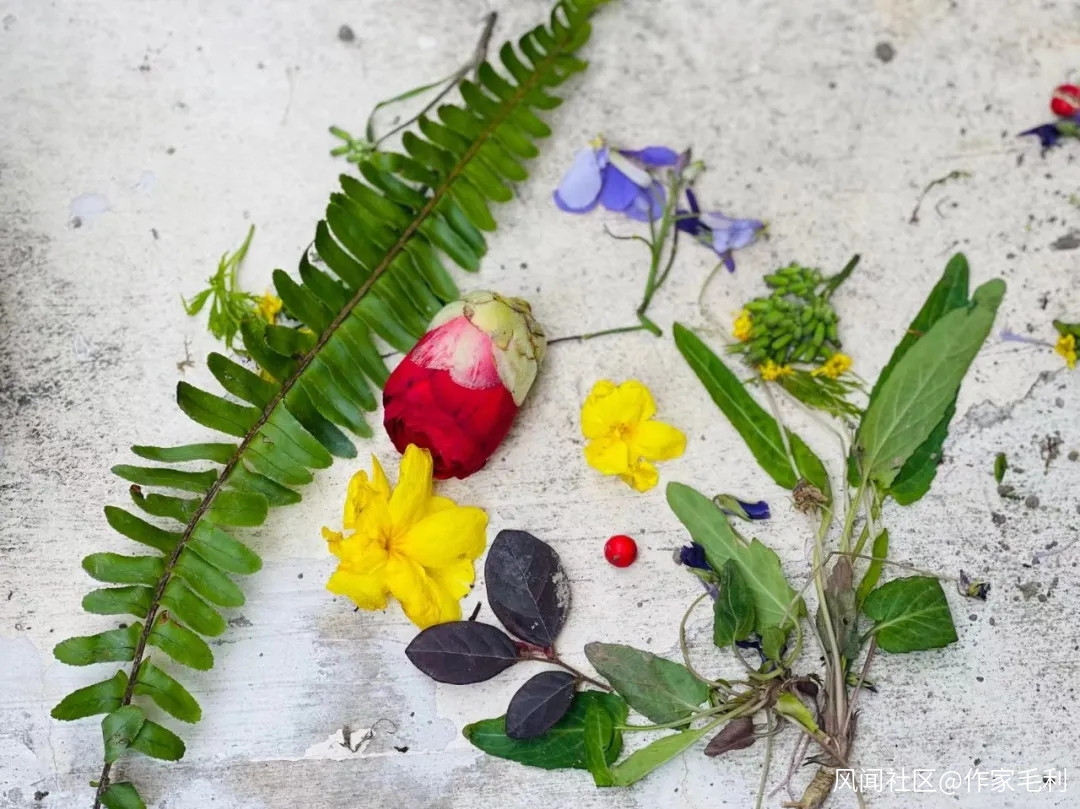 一會往家裏運點枸杞藤,一會弄點青苔,摘一朵山茶花給妹妹,有一根蕨類植物很有意思,趕緊收集回家做標本。