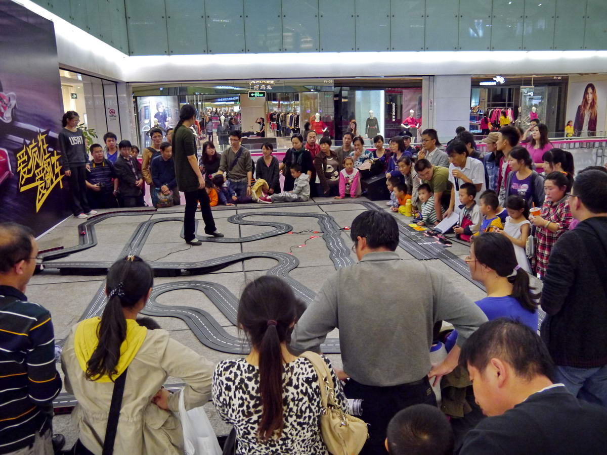 下圖是當時在北京一個商城裏銷售商辦的比賽。