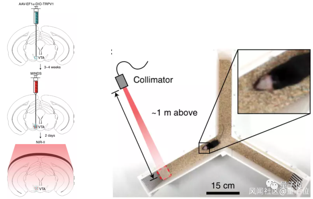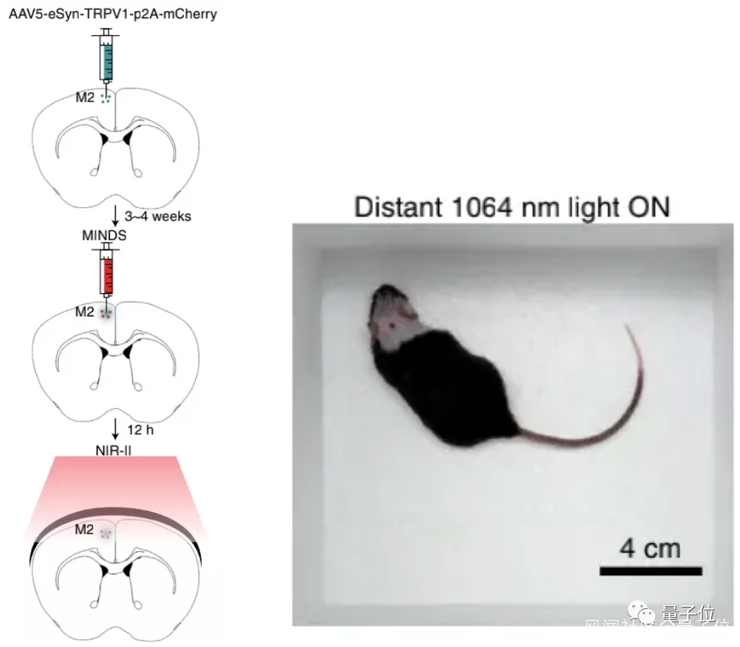 科學家們先是在小鼠大腦運動皮層一側神經元中添加TRPV1通道,再注入MINDS分子,最後觀察小鼠的行為。