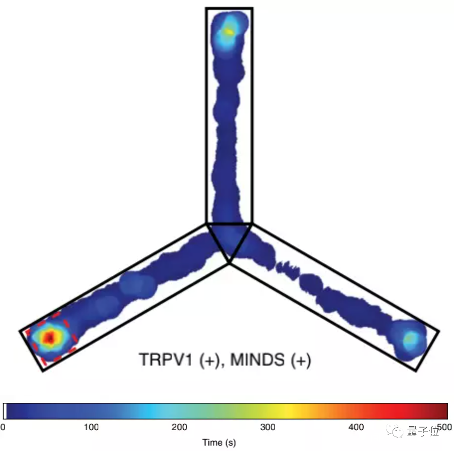 △ 不同顏色代表小鼠停留的時間,紅色最久