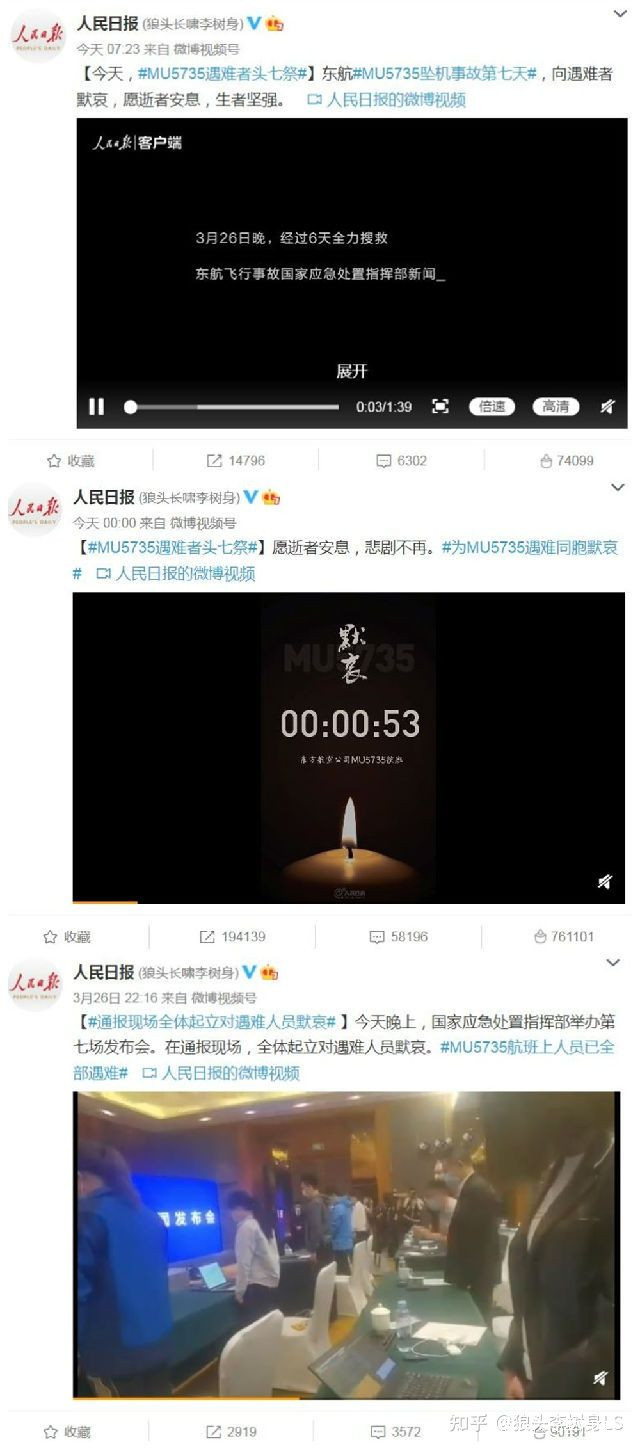 今天,我們為遇難同胞默哀。而MU5735的搜尋工作仍將繼續,後續將進一步加大事故現場搜尋力度,繼續尋找遇難人員遺骸遺物及飛機殘骸,同時認真妥善做好遇難者的善後工作。