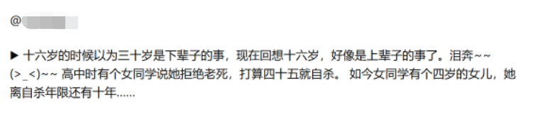都像極了在13/14歲才會出現的極端想法:到29歲就自殺。因為30歲太可怕。