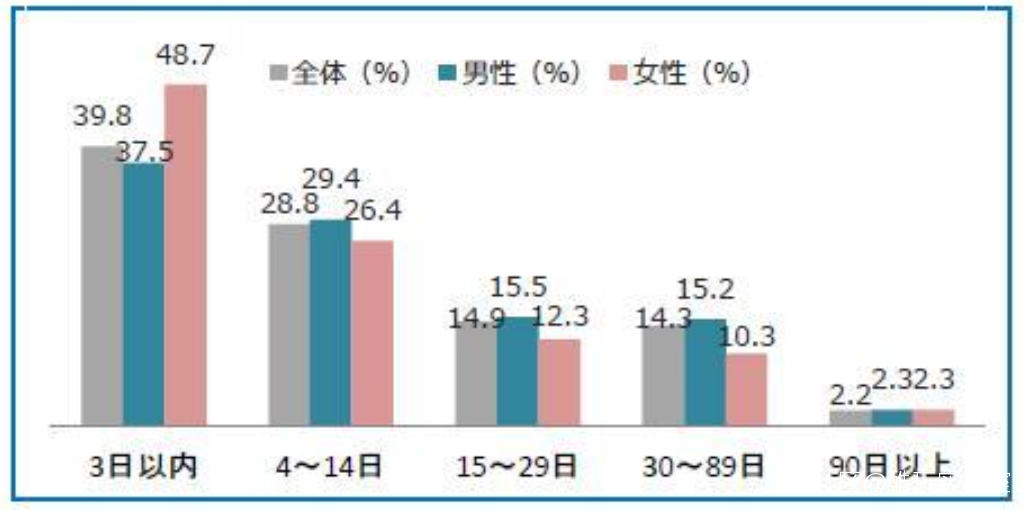 (孤獨死屍體被發現天數男女比例 | 圖源:《第三次孤獨死現狀報告》)