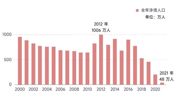 2021年,全中國人口淨增長48萬,總和生育率更是已經降低到1.1左右。