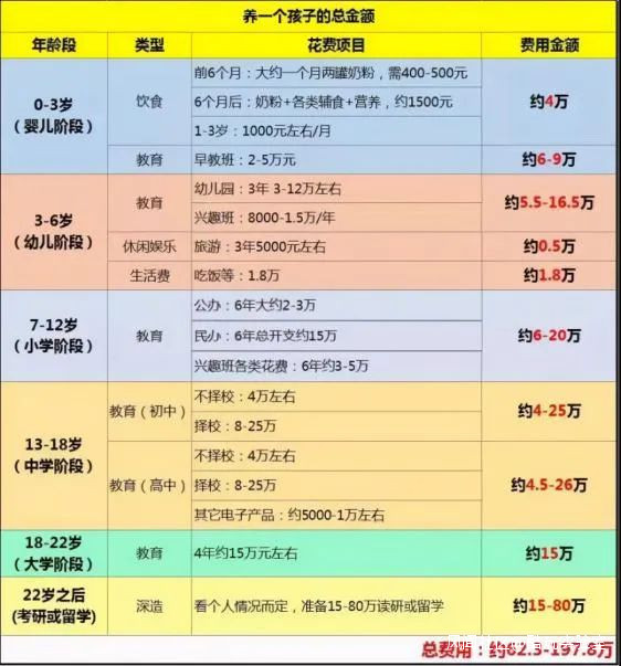 (有人計算,養一個孩子總花費錢,在 62 萬到 198 萬之間)
