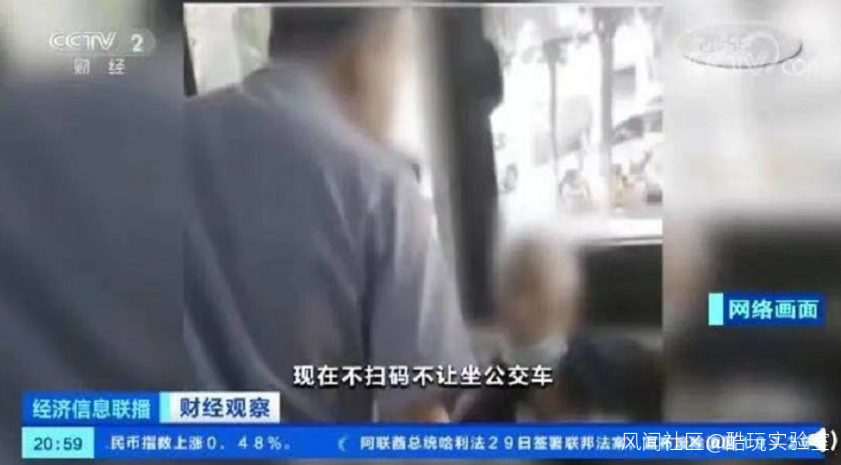 (2020年,一位老人乘公交車時因沒有手機,無法掃健康碼,被司機停車拒載 | 圖源:央視財經 )