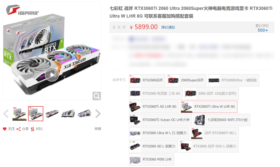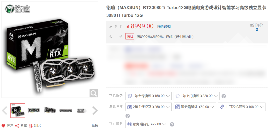 其中銘瑄RTX 3080Ti 甚至已經破發,滿減後 8349 的價格,比指導價還要便宜 650 塊錢,而前陣子七彩虹RTX 3080Ti 戰斧甚至還有過 7499 的好價: