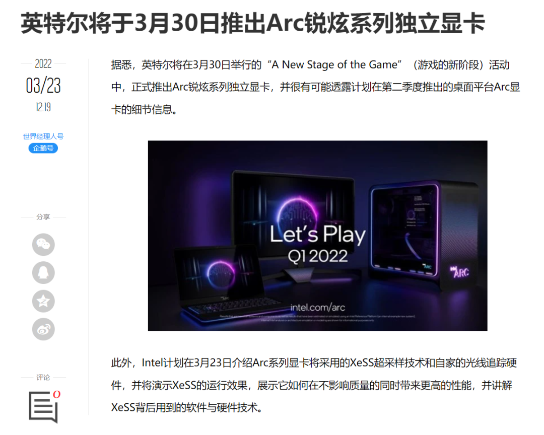 就連隔壁英特爾也是蓄勢待發,準備在今年就把自家的 Arc 鋭炫系列獨立顯卡投放到市場。