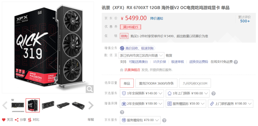 定位比RX 6600XT 更高一檔的 RX 6700XT,它的價格也從5699 一路跌到了 4999,而如果是在第三方渠道,你花 4298 就能買到一張RX 6700XT。
