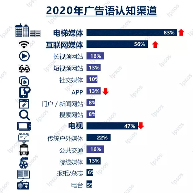 沒想到吧,在廣告的認知度上,在電梯媒體面前,互聯網媒體居然都得往後稍稍。。。