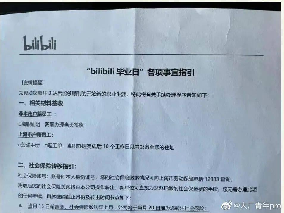 有網友曬出了B站的裁員文案,將裁員稱之為“畢業日”。