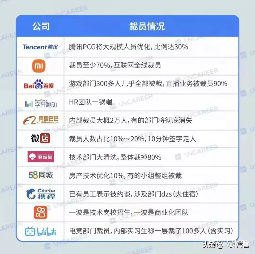 某東、某滴、某贊、某騰、某B等巨頭又開始花式裁員了。