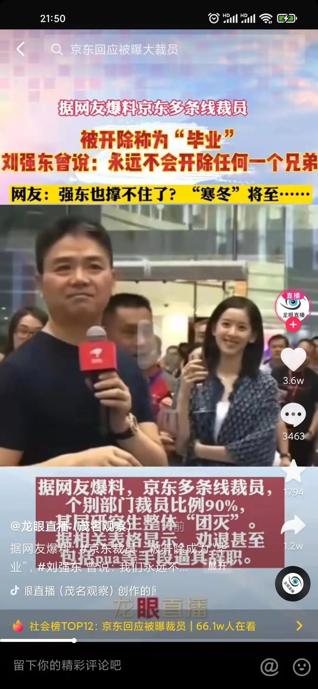 劉強東在天津舉辦的第二屆世界智能大會,在會上劉強東針對最近“裁員一半”的傳聞做出了回應:“我們永遠不會開除任何一個兄弟”。