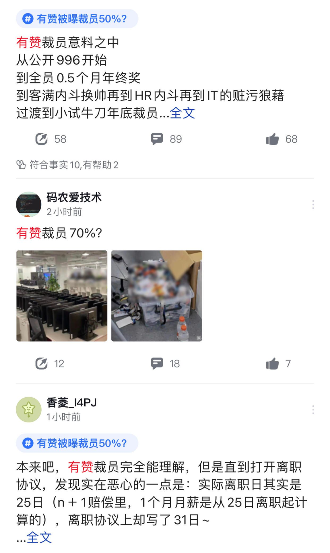 有不少網友在社交平台上爆料稱有贊裁員,中台部門裁員高達70%、新零售部門裁員達50%~60%,預計高達2000人。