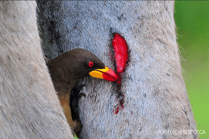 另外,如果動物身上有傷口,那可就慘了,牛椋鳥會不斷撕扯舊傷口,把嘴巴伸進去喝血,導致動物感染。