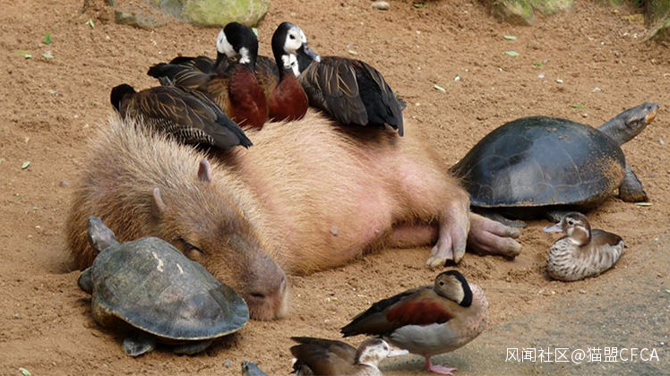 有人説因為水豚對誰都親切友好,自己也很佛系,在它身邊其它動物也能夠獲得平靜。