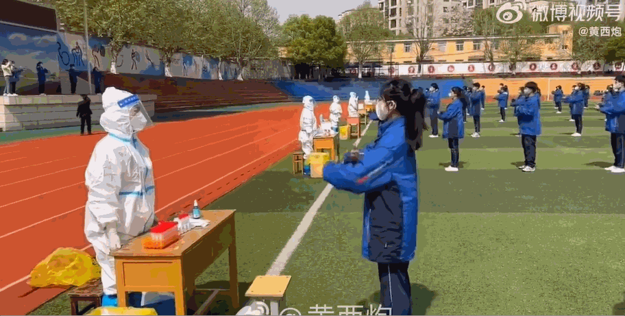 最近各地都越來越流行這種,在排隊核酸檢測的時候,對醫務人員表演節目,以表達感謝的視頻。
