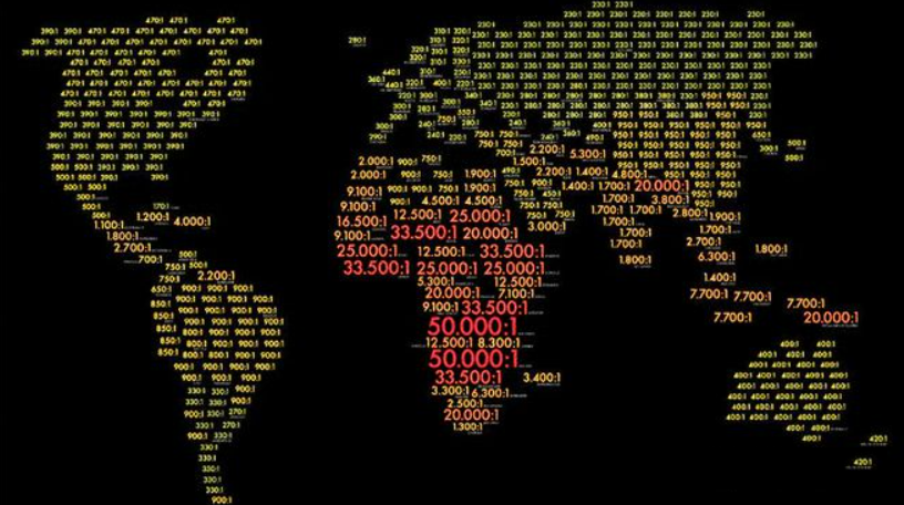 這有一張國外數據公司繪製的世界醫療資源地圖,可以看到中國一名醫生需要負責約950名患者,而在排名靠前的國家,這個數字通常在200-300。