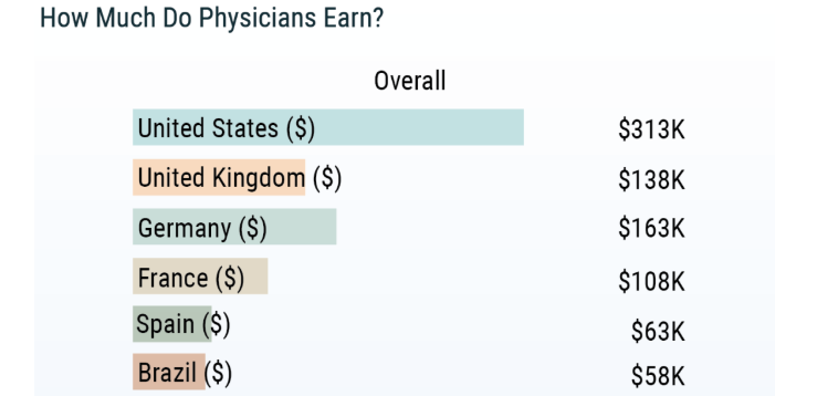 比如人均GDP和中國差不多的巴西,他們醫生是國內收入絕對的天花板,達到了人均58000美元每年。(40萬人民幣)