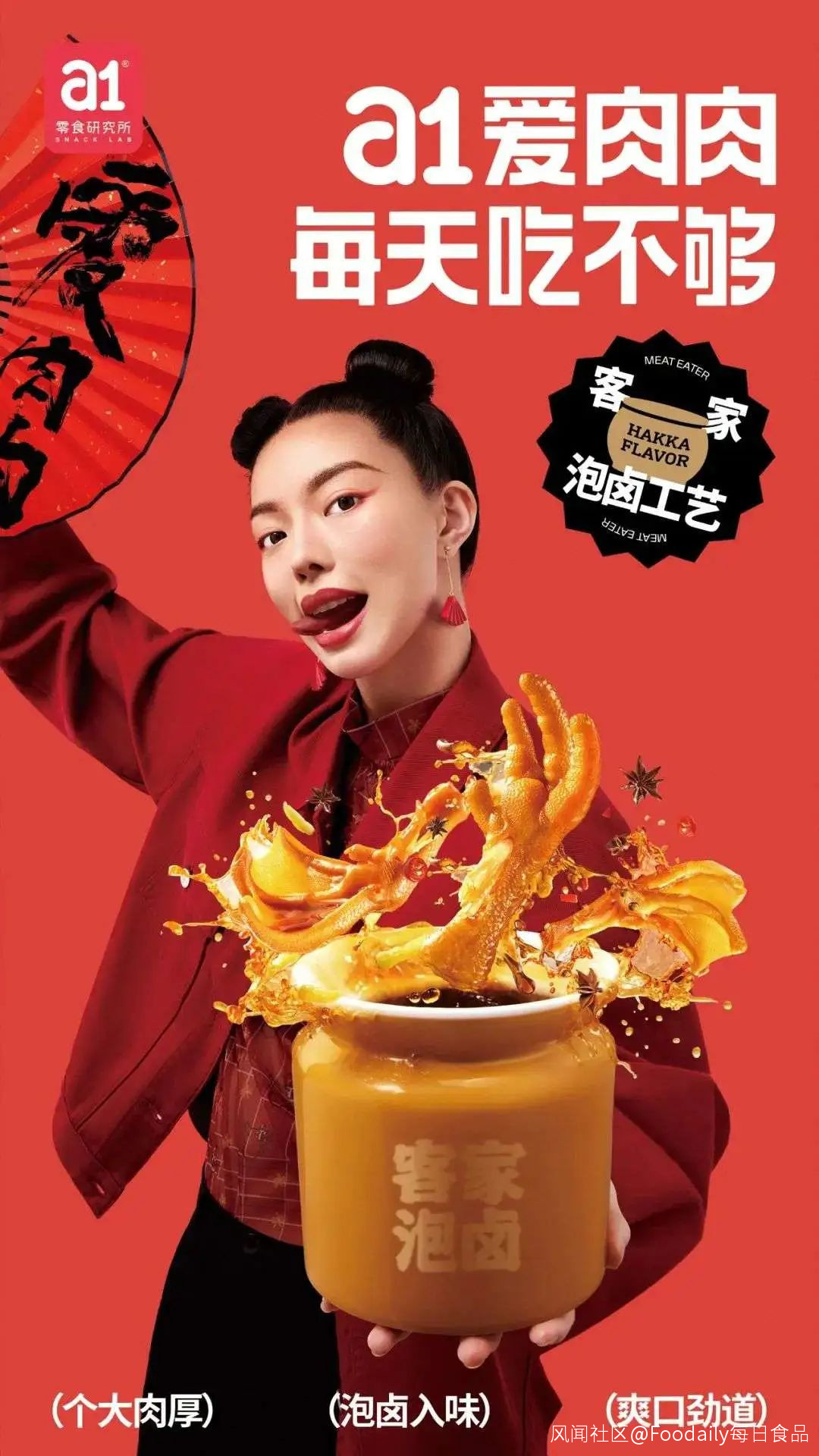 3月18日,a12022新品發佈會隆重召開,同時a1正式宣佈推出a1愛肉肉系列客家泡滷禽類產品,實現品類外延。新系列包括客家泡滷鴨掌、客家泡滷鳳爪、客家泡滷鴨翅等核心產品。未來,a1愛肉肉還將在腸衣類、禽肉類、素肉類、豬肉類、牛肉類、海味類等多品類實現佈局,全面搶佔休閒肉製品賽道。