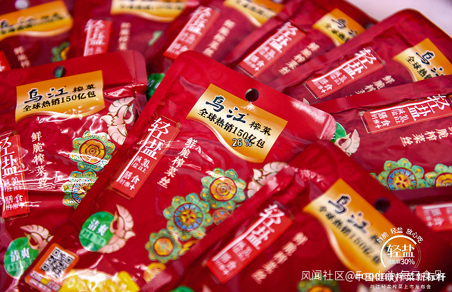 3月22日,烏江榨菜正式推出新品輕鹽榨菜,以滿足消費者對健康飲食產品需求。新品依託行業獨有的淺鹽窖藏加香漬制、精準控鹽以及不需要添加防腐劑就能保鮮的柵欄技術工藝三大工藝,實現了在保留烏江榨菜原有鮮脆爽口等產品特點的基礎上實現減鹽30%以上。新版的包裝也從老版烏江榨菜的臉譜上延展出來,以故宮紅為背景色,綜合臉譜、故宮紅以及琺琅這三種具有濃厚中國風的傳統元素,演繹中華文化的傳承。