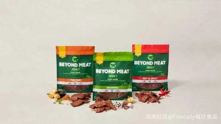3月23日,植物肉生產商Beyond Meat(別樣肉客)和百事公司共同宣佈推出一款植物肉“肉乾”產品,這也是雙方合資公司的第一個產品。新品以豌豆和綠豆中的蛋白質為基礎原料,共有原味、辣味和紅燒味三種口味,將於本月在美國市場上市。