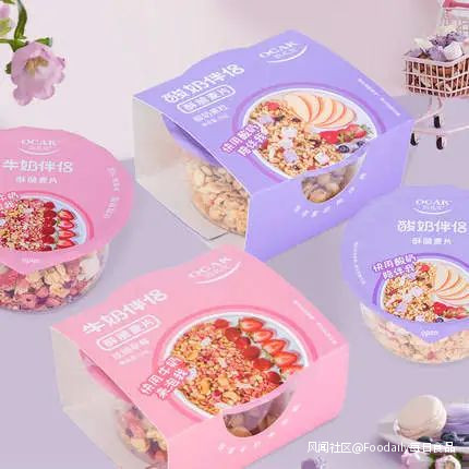 Foodaily發現,歐扎克針對早餐場景又推出一款元氣早餐碗衝飲麥片,一碗搞定快手早餐,同時也更加便攜衞生。新品使用低温烘焙技術保留更多穀物營養,燕麥粗糧搭配富含膳食纖維,並且根據沖泡場景分為酸奶伴侶、牛奶伴侶兩款:前者含有2種口味大果粒酸奶塊、扁桃仁等6種水果堅果;後者為玫瑰草莓口味,添加越南腰果和2種麥脆,口感清甜脆爽。新品天貓旗艦店售價3碗/34.7元。