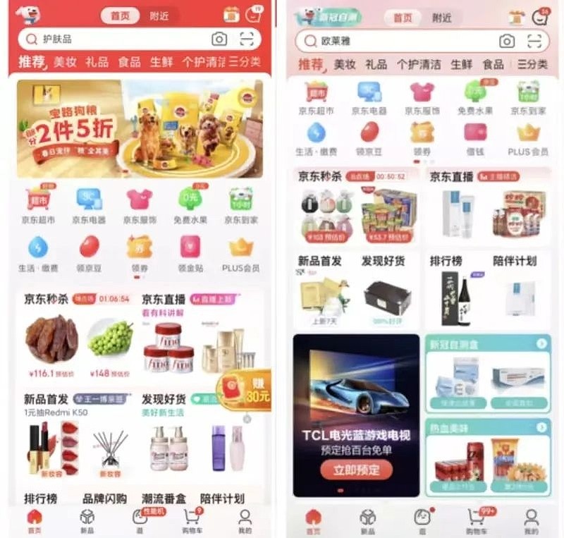 據億邦動力報道,京東開始內測首頁改版,將首頁焦點圖去掉,使得短視頻內容在第一屏出現,和淘寶首頁更為相似。據悉,京東在618之前還會繼續優化,目前顯示的版本不一定是最終版本,但日後更加偏向於短視頻內容是大的趨勢。