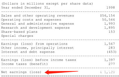 1998年,波音開啓了第一輪股票回購計劃,這批股價的市值高達45億美元,有多高?看下當年報表中波音的淨利潤就知道了。