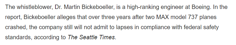 美國新聞雜誌Newsweek在去年底有一篇報道,叫《波音737MAX墜毀的3年後,波音將不會承認相關安全問題》,報道中的舉報人是波音的高級工程師——Martin Bickeboeller。