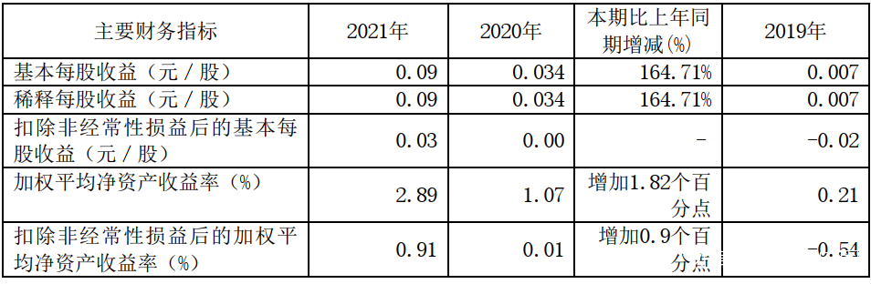 3月26日,江蘇連雲港港口股份有限公司(簡稱“連雲港”,601008)發佈了2021年年度報告,2021年,連雲港營業收入約20.33億元,同比增加25.34%;歸屬於上市公司股東的淨利潤盈利約1.09億元,同比增加194.23%;基本每股收益盈利0.09元,同比增加164.71%。其他主要財務指標如下圖: