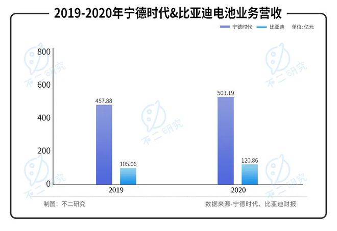 但與頭部玩家體量相比,仍存在數十倍差距。根據業績預報,寧德時代2021年預計營收達1212.73億,2019年~2020年營收分別為457.88億和503.19億元;比亞迪電池業務2019年~2020年營收分別為105.06億和120.86億元。