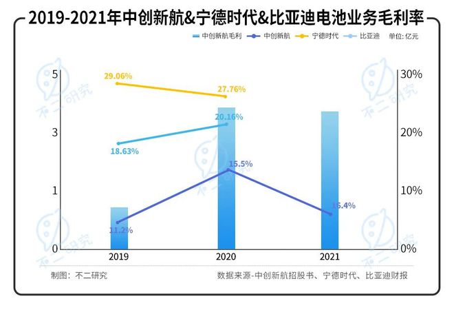 此外,中創新航的另一短板是遠低於同行的毛利率。2019年~2021年,中創新航的毛利率分別為4.8%、13.6%及5.5%;寧德時代2019年~2020年毛利率分別為29.06%和27.76%;比亞迪電池業務2019年~2020年毛利率分別為18.63%和20.16%。