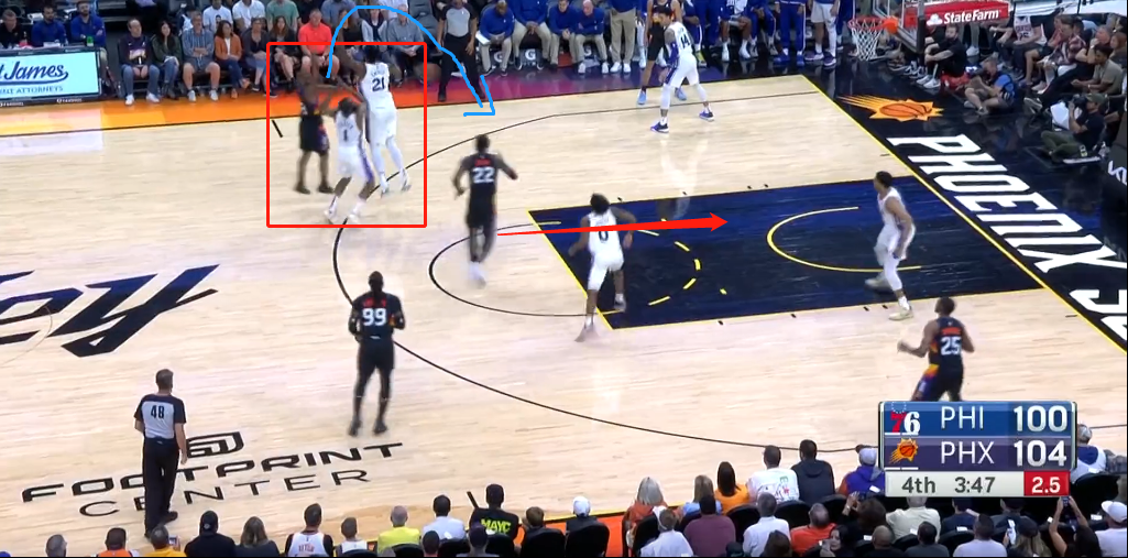 不僅是恩比德,所有大個子球員都不適合最後階段來發起進攻,所以他們需要外線的球員來發起,自己作為終結點或者牽制點。
