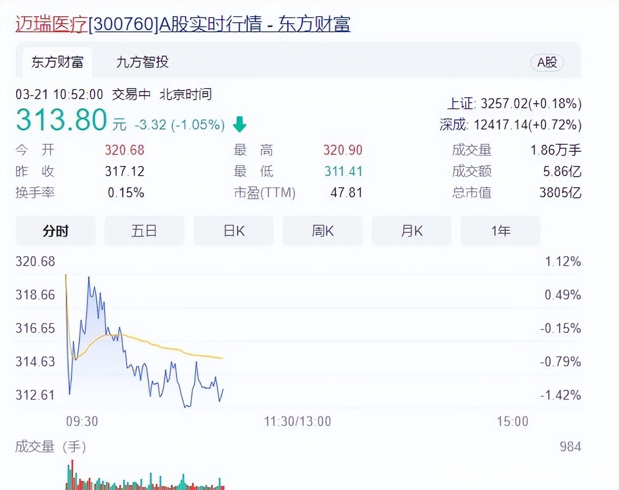 從502元到313.80元,股價蒸發接近50%,邁瑞醫療只用了不到半年。