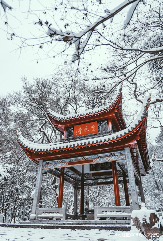 圖片|大雪過後的嶽麓書院愛晚亭 · 圖蟲創意 ©