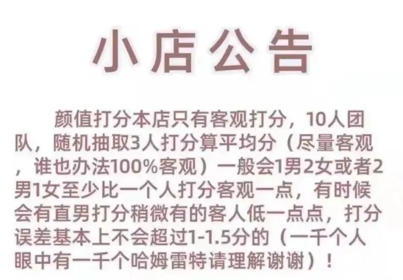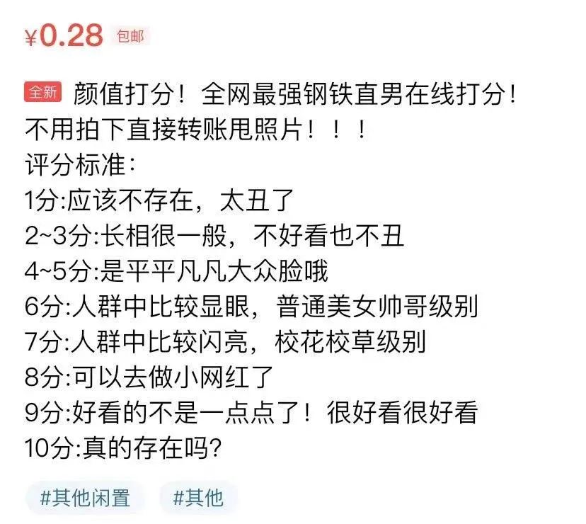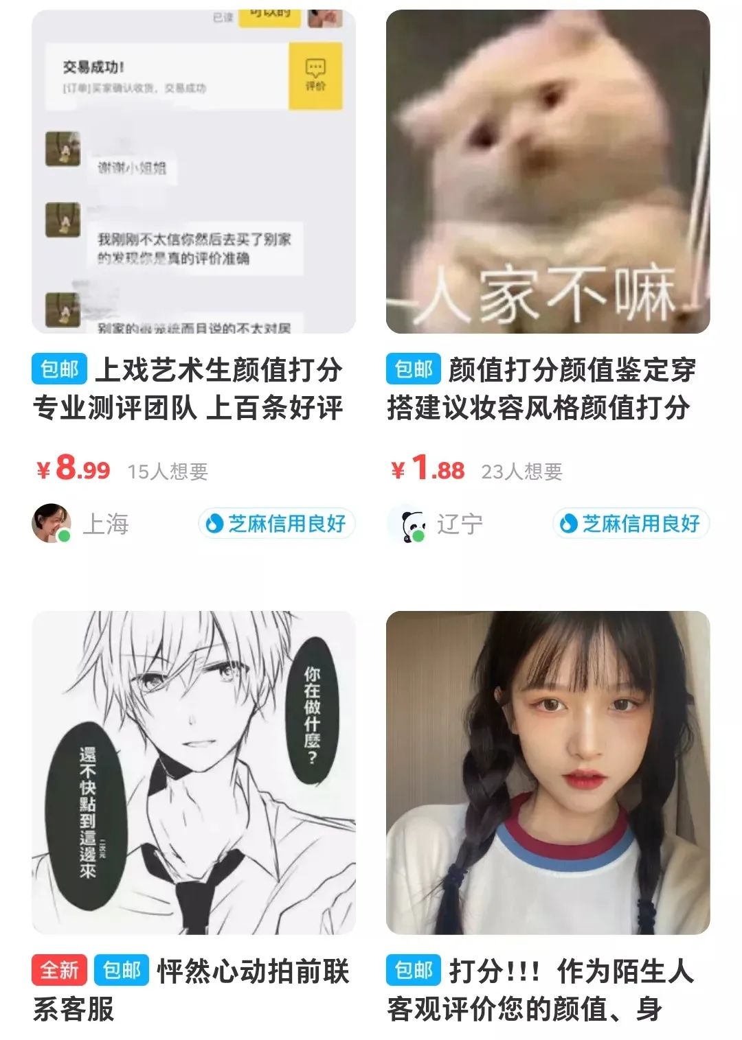 這個時候,賣家們瞅準商機,推出了顏值打分服務。